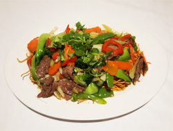 46. CRISPY OR SOFT EGG NOODLE STIR FRIED WITH BEEF & VEGETABLE .................................. $22.00